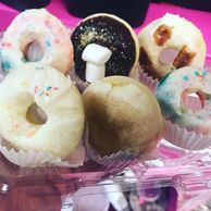 baked mini vanilla bean donuts in array of glazes & toppings decorated to suit